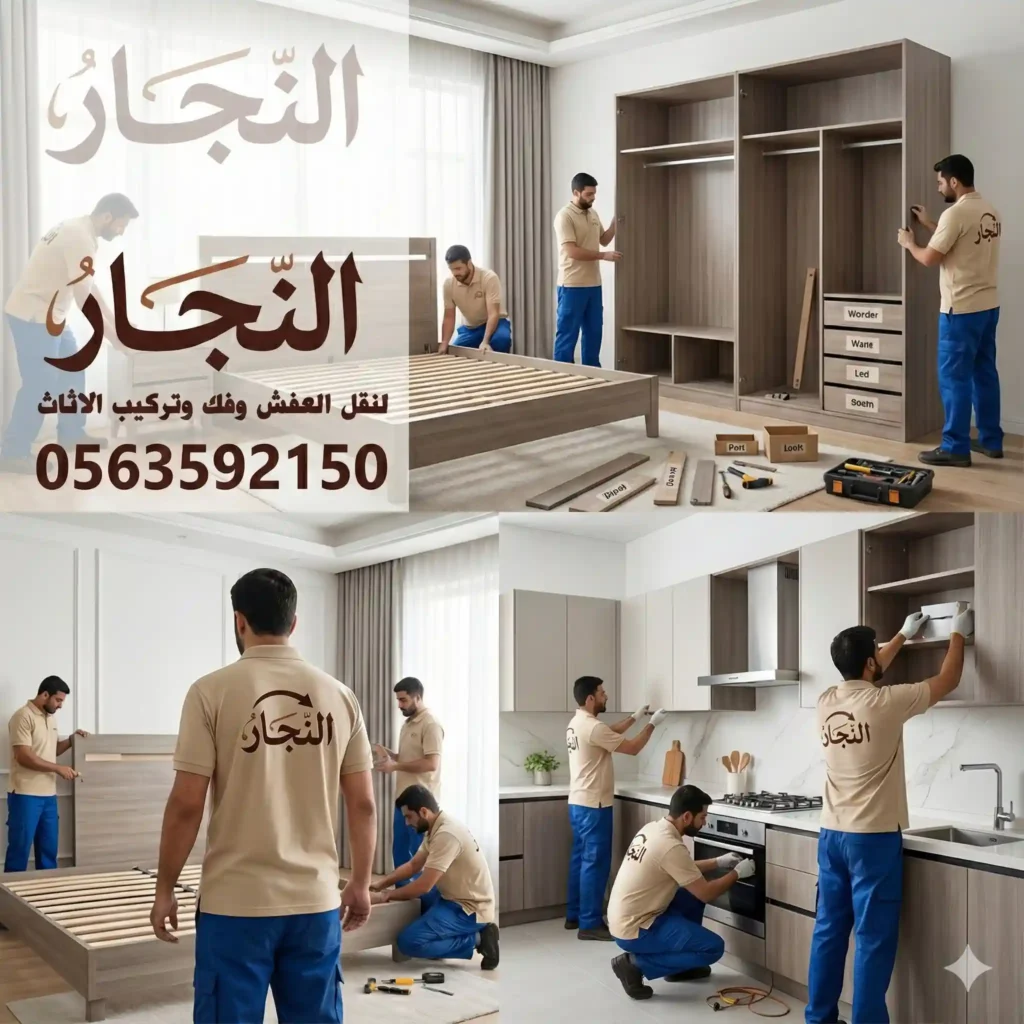 ب- فك وتركيب الأثاث : لا داعي للبحث عن نجار مستقل؛ فخدمتنا تشمل فك وتركيب غرف النوم، المطابخ، المكيفات، والستائر على أيدي فنيين محترفين لضمان عودة كل قطعة لمكانها الصحيح.